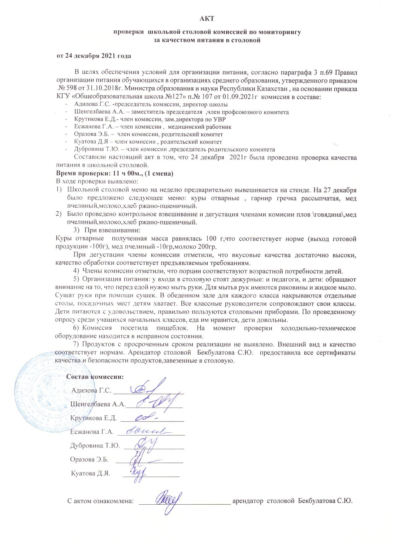 24 декабрь 2021 0 1 2 3 4 5 Мониторинг качества питания в столовой (декабрь) Осы беттің QR-коды:QR-код этой страницы: