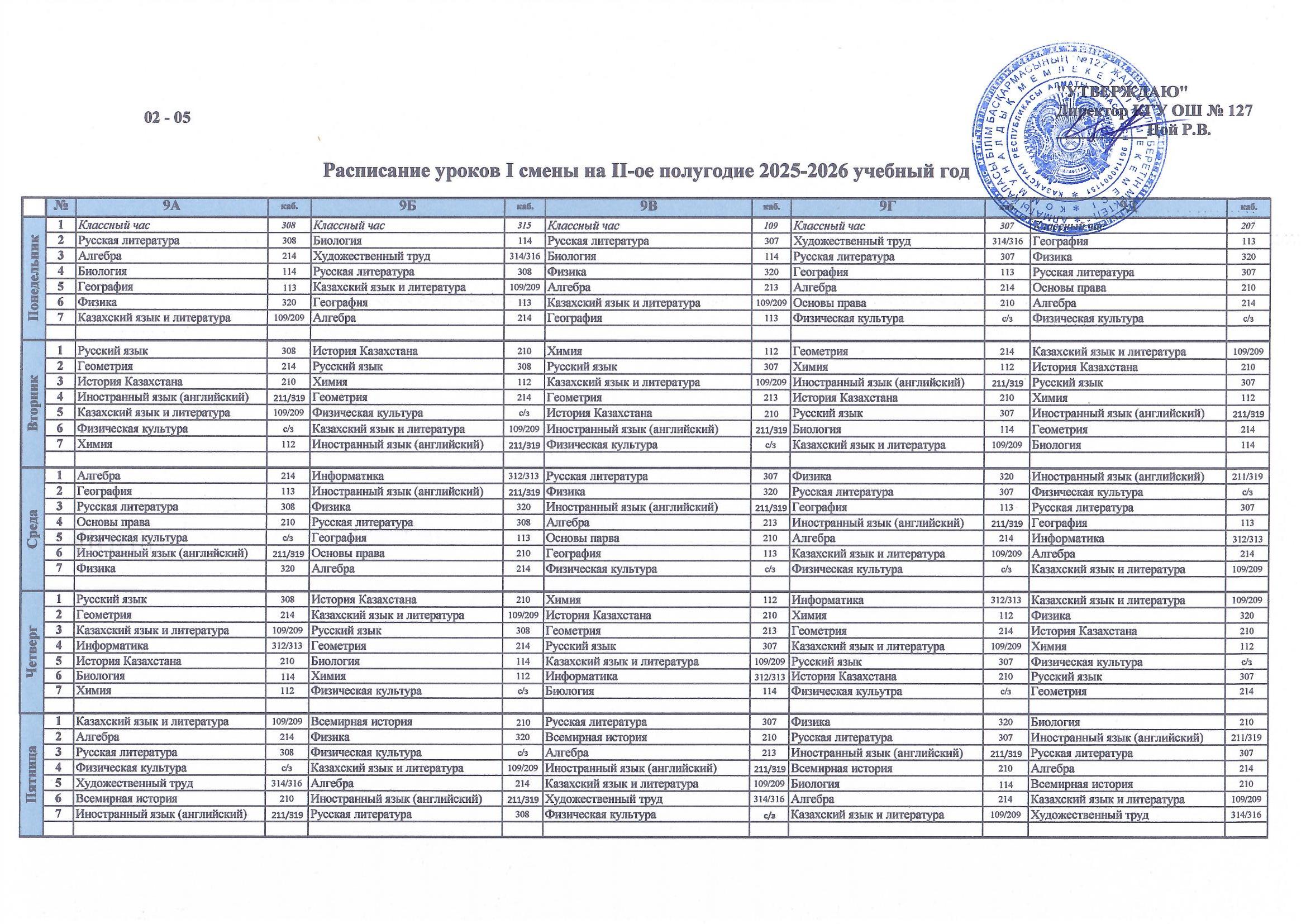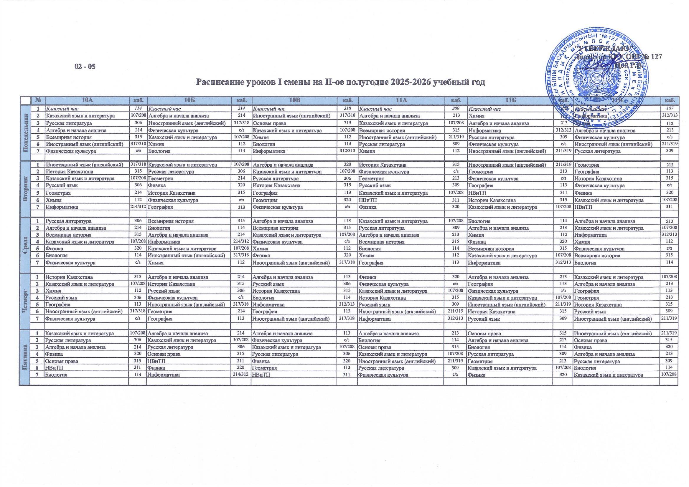 08 январь 2026 0 1 2 3 4 5 2025-2026 оқу жылының II жартыжылдығына арналған I ауысым сабақ кестесі/ Расписание уроков I смены на II-ое полугодие 2025-2026 учебный год Осы беттің QR-коды:QR-код этой страницы: