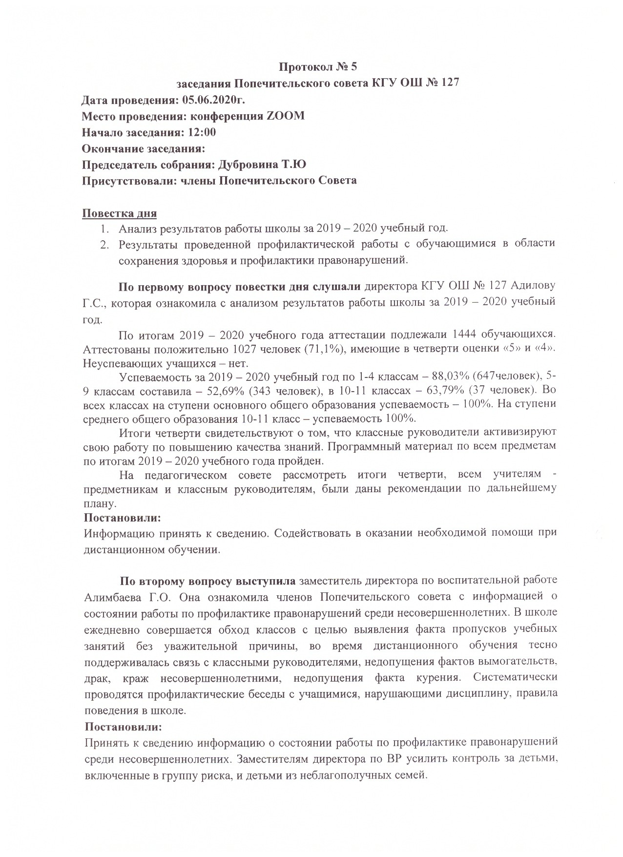 05 июнь 2020 0 1 2 3 4 5 Протокол № 5 заседания Попечительского совета КГУ ОШ № 127 Осы беттің QR-коды:QR-код этой страницы: