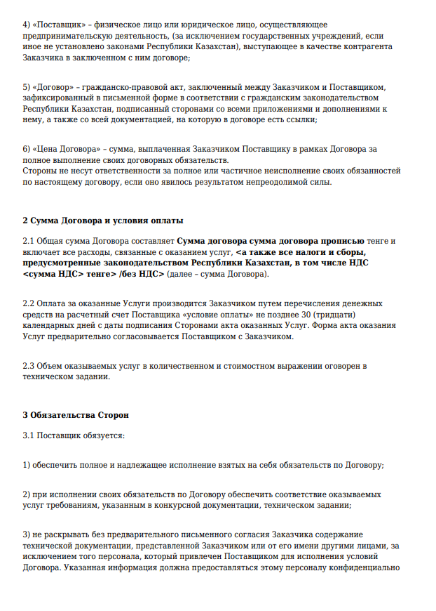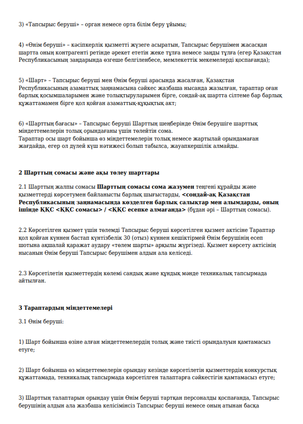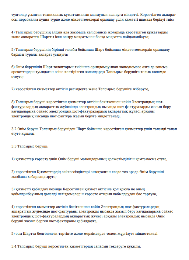 Договор об оказании услуг с ТОО "Хасанова Р.Н."