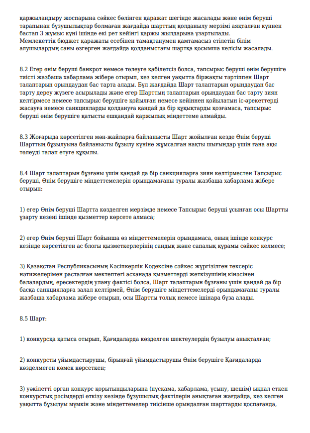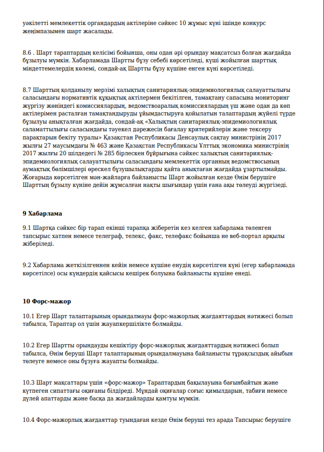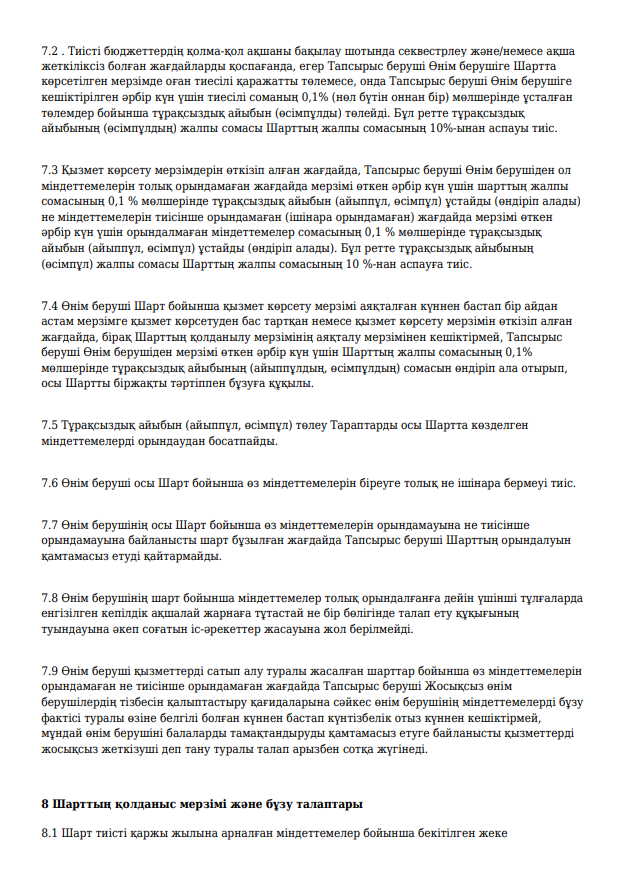 Договор об оказании услуг с ТОО "ЖанХан Коммерц"