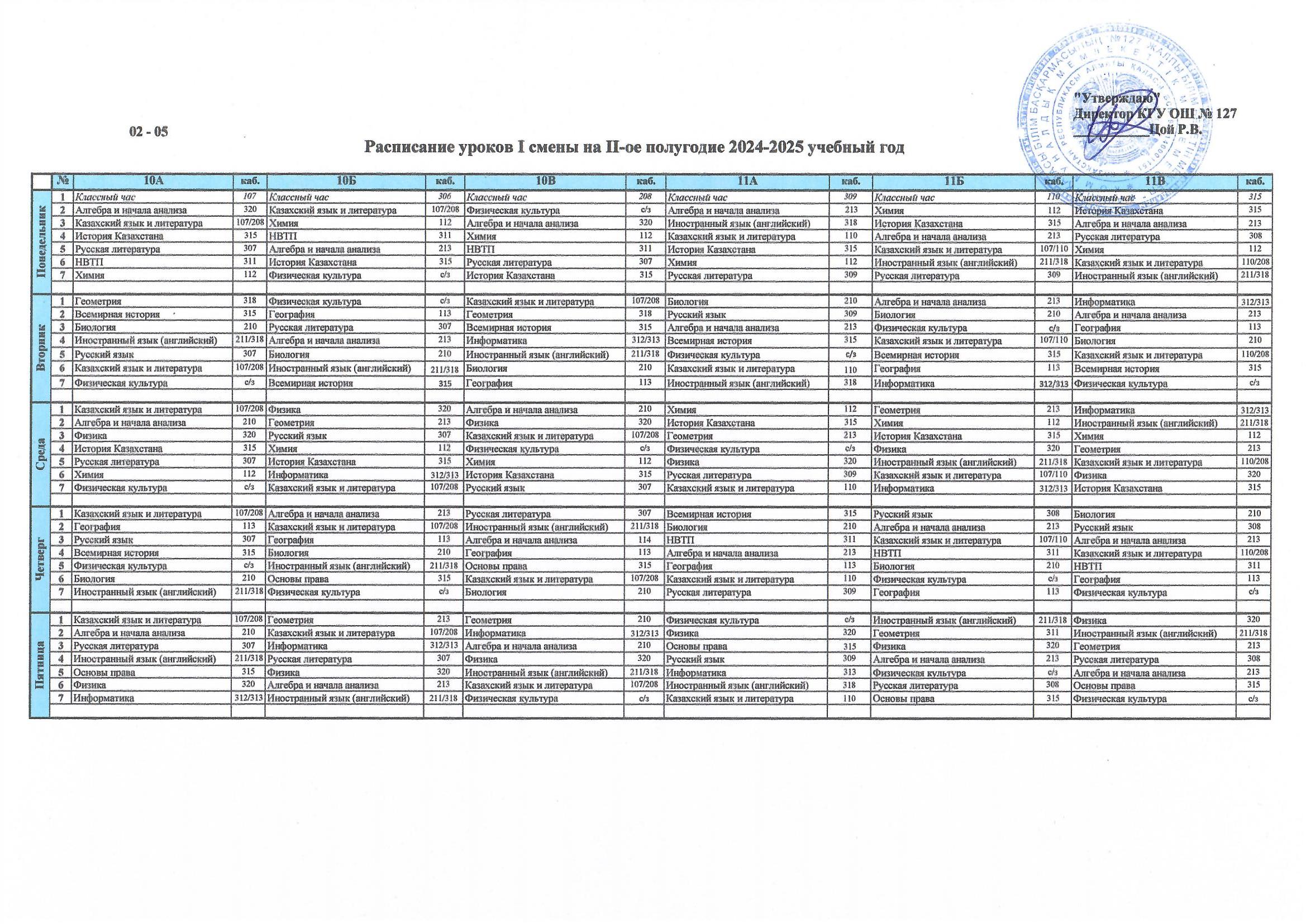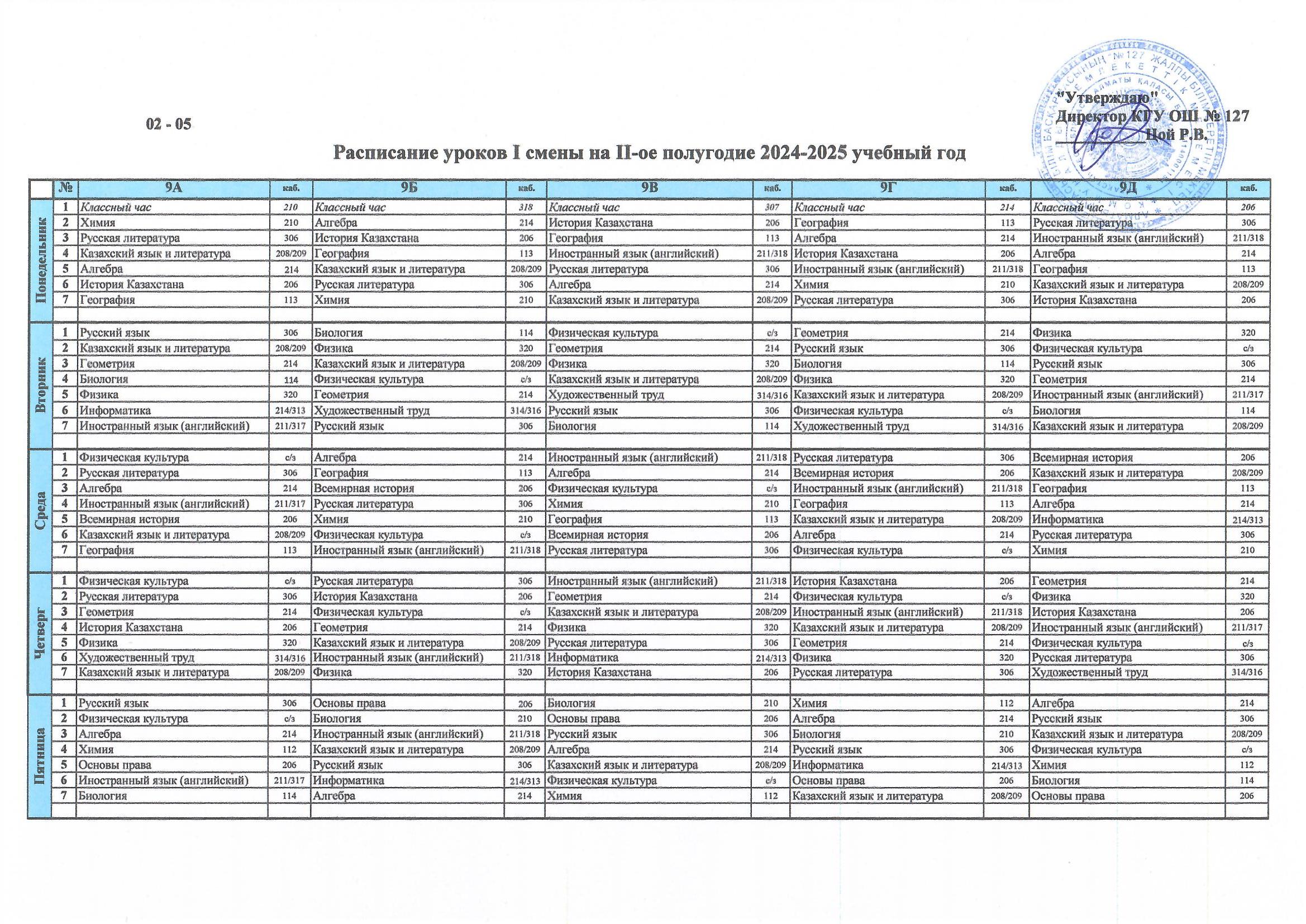 28 январь 2025 0 1 2 3 4 5 2024-2025 оқу жылының II жартыжылдығына арналған I ауысым сабақ кестесі/ Расписание уроков I смены на II-ое полугодие 2024-2025 учебный год Осы беттің QR-коды:QR-код этой страницы: